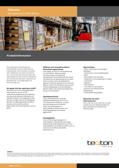 Die funktionellen Anforderungen an Industrieböden wachsen stetig. Moderne Industrieböden müssen belastbar, abriebfest, dicht, pflegeleicht und optisch ansprechend sein. TEQlotos erfüllt all diese Anforderungen und bietet mit seiner polierten Oberfläche eine dauerhafte und kostengünstige Alternative zu Versiegelungen und Beschichtungen.