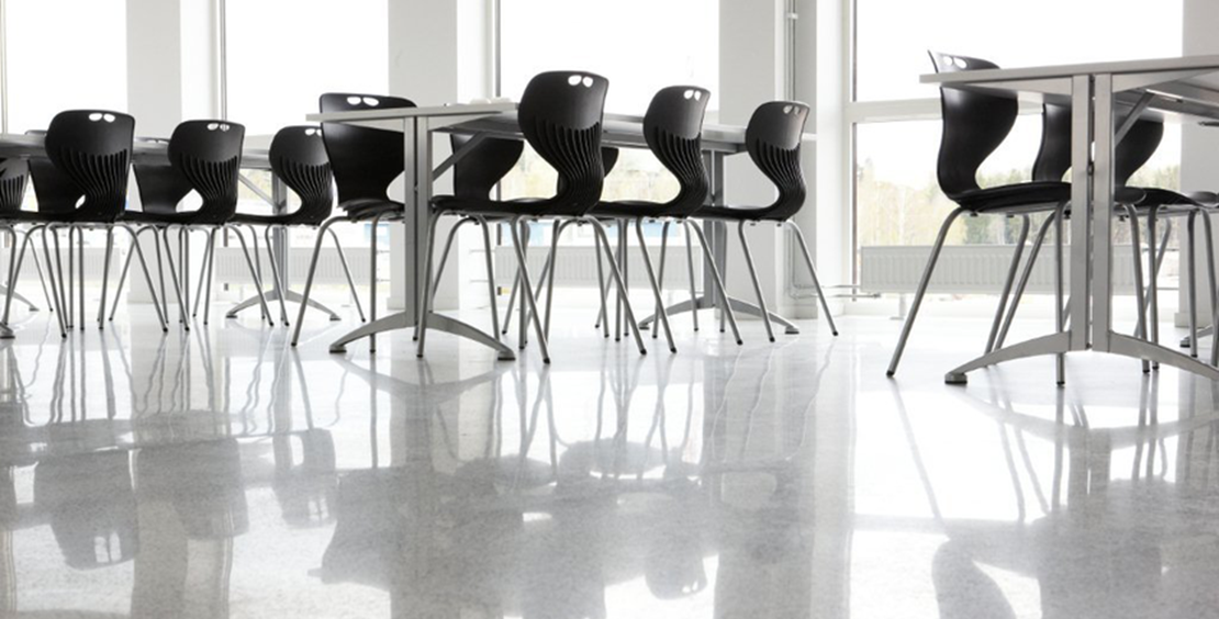 Ein großer Vorteil von TEQterrazzo ist die Möglichkeit, Renovierungen häufig im laufenden Betrieb durchzuführen. Der Schleifprozess ist vollständig chemikalienfrei, geruchlos und verursacht weder Staub noch Rauchbelästigung.