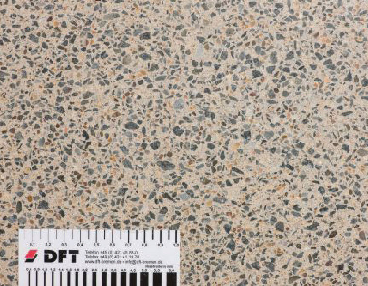 TEQterrazzo Oberfläche Basis des TEQterrazzo ist ein Brecoplan-Industrieboden, der durch Oberflächenbearbeitung in verschiedenen Schleif- und Polierstufen zum TEQterrazzo veredelt wurde.