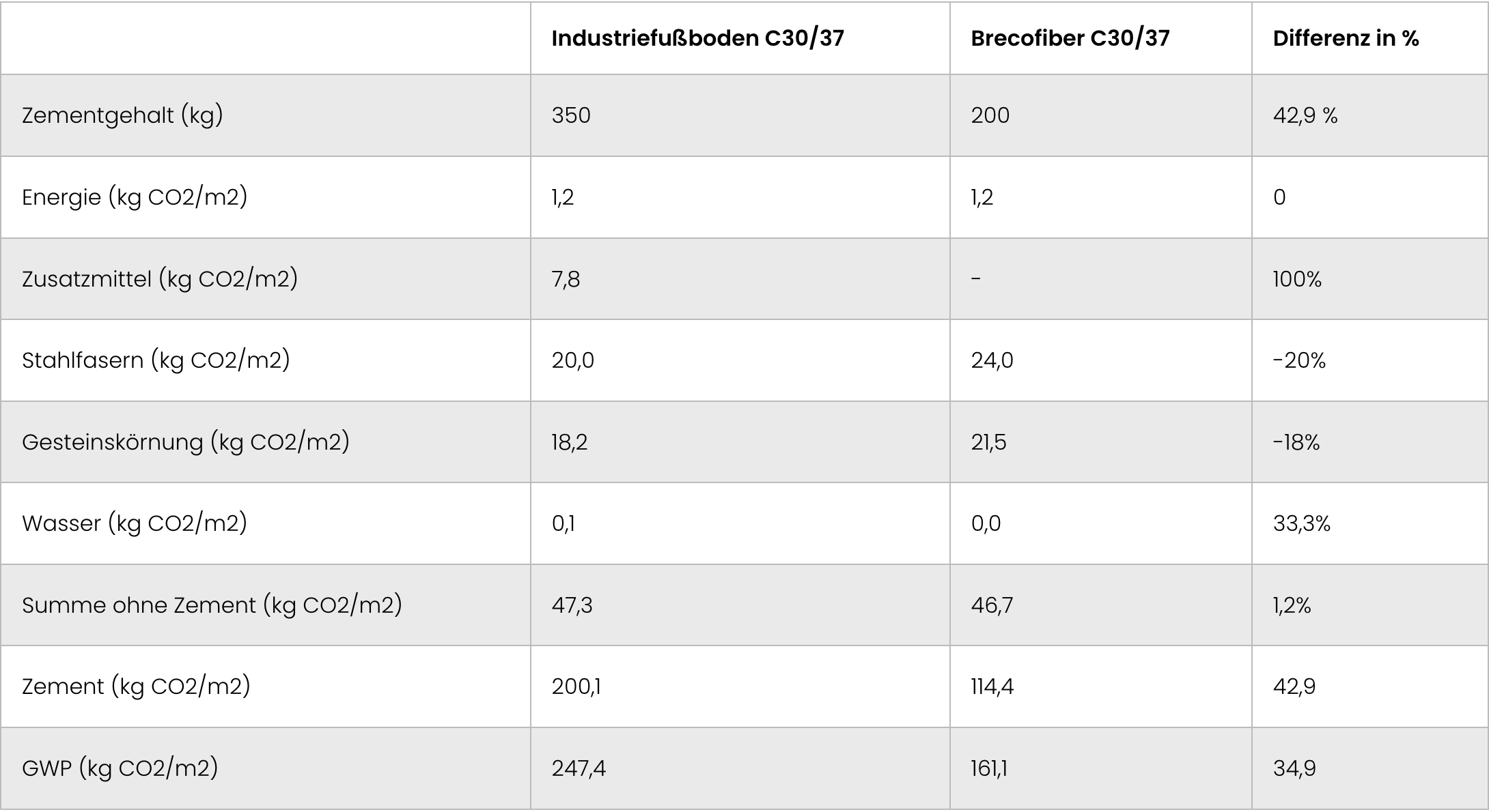 Ergebnis: Brecofiber reduziert die gesamten CO₂-Emissionen um fast 35 % – ohne Einbußen bei Festigkeit oder Leistung.